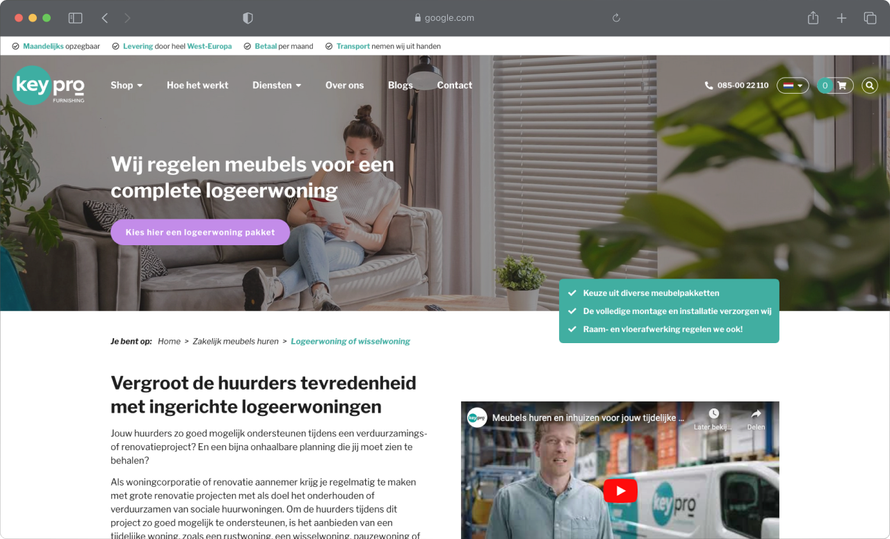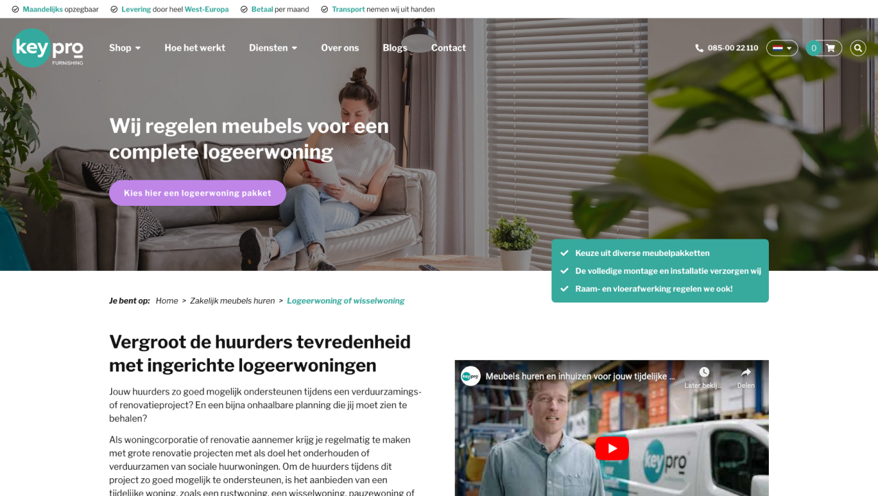 Keypro de verhuurmakelaar ruim 10 jaar geleden begonnen met meubelverhuur. Toen ze begonnen hadden veel woningcorporaties meubels in eigen beheer. Ook expats kochten destijds vaak zelf tijdelijk meubilair en moesten dit na hun projecttijd weer zien te verkopen óf gooiden het zelfs weg. Tijdrovend en alles behalve duurzaam.