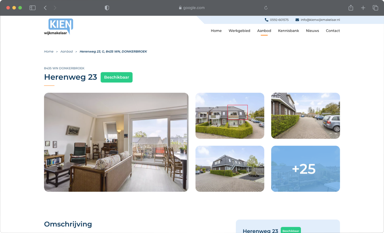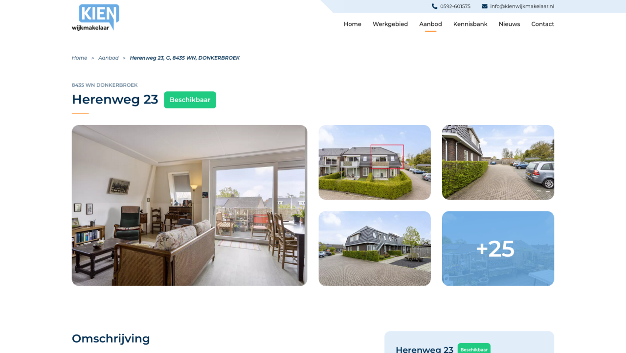 Ondanks dat KIEN wijkmakelaar net opstartte, begonnen ze direct met meerdere vestigingen. Tijdens het ontwerpen en bouwen hebben wij dit direct kunnen meenemen zodat het schakelen tussen verschillende vestigingen en dus wijken naadloos kan verlopen. Elke vestiging is ook een makelaar op zich en heeft zo zijn eigen pagina's, hiervoor hebben we wat functies bovenop de standaard WordPress menu gebouwd.