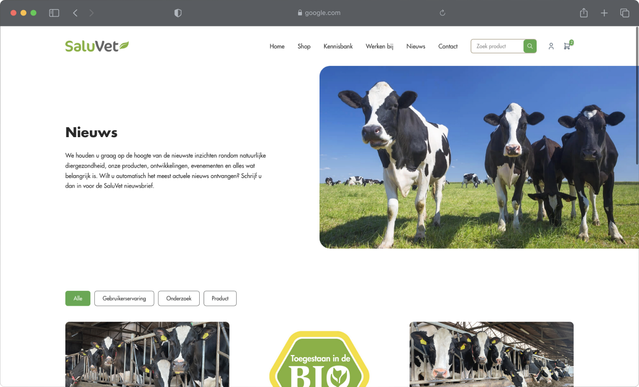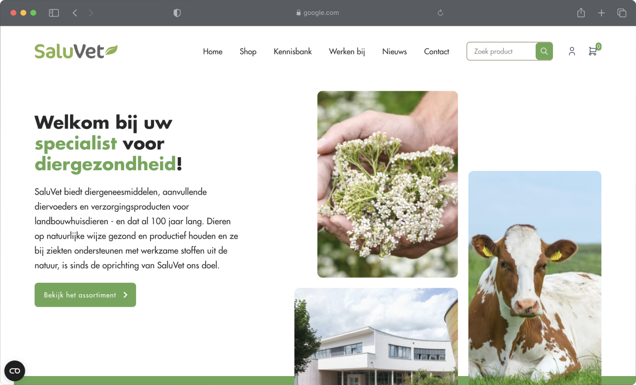We kregen de opdracht om een nieuwe webshop te bouwen voor SaluVet, waarbij gebruik werd gemaakt van WooCommerce. Het doel was om een gebruiksvriendelijke en efficiënte online winkel te creëren die voldoet aan de specifieke eisen van SaluVet's professionele klanten. De ontwikkeling van de webshop begon met een grondige analyse van de behoeften van het bedrijf en hun klanten. Hierbij lag de focus op een intuïtief ontwerp, soepele navigatie en een robuust beheersysteem voor producten en bestellingen.